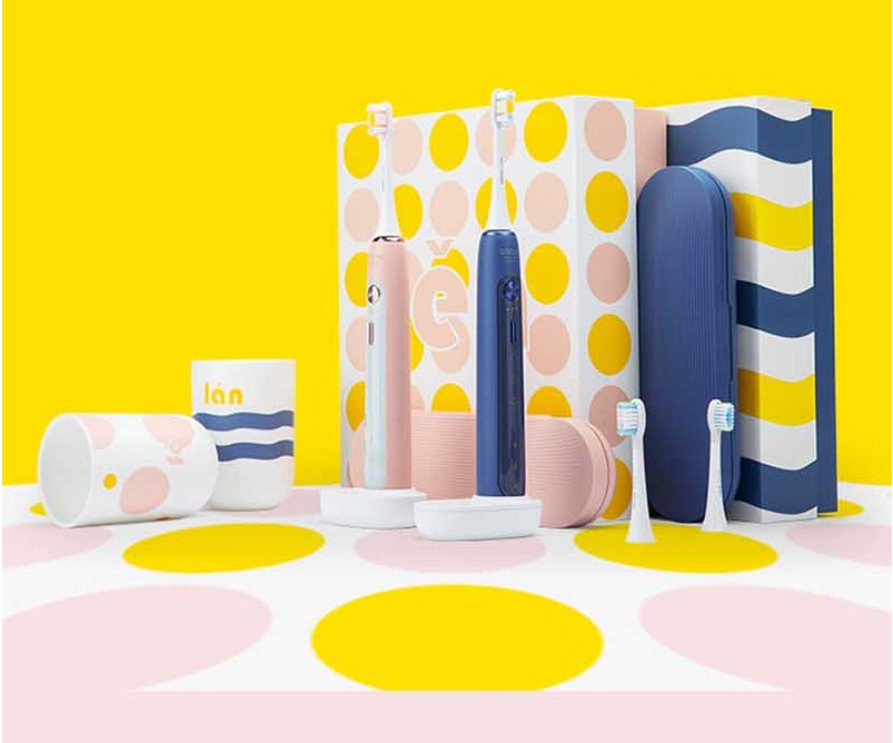 박스 패키징에는 블루 또는 핑크로 구성된 전동칫솔 본체와 칫솔모 3종 그리고 전용 케이스와 함께 전용 컵을 탑재하고