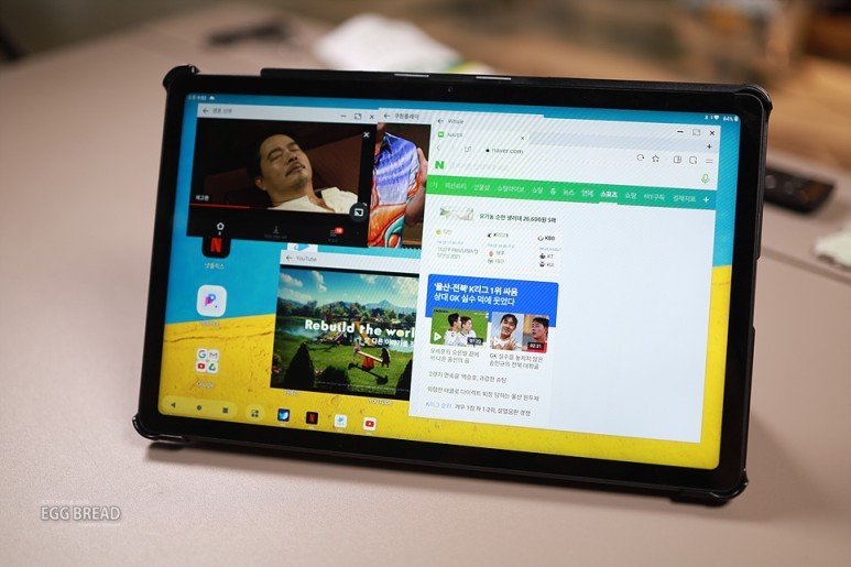 이런 기능이 있는 줄 알았다면 처음부터 6GB 제품을 선택했으면 조금 더 활용적인 측면에서 좋지 않았을까 싶은데요. 단순히 영상 시청용으로 구입을 했지만 영상도 시청하면서 다른 인터넷 서핑도 가끔은 하고 싶다 보니 그럴 때마다 휴대폰으로 인터넷을 하곤 하는데 하나의 화면에 여러 앱을 동시에 뜨워놓고 사용할 수 있는 작업 모드가 존재하여 좀 더 편한 환경을 제공합니다.