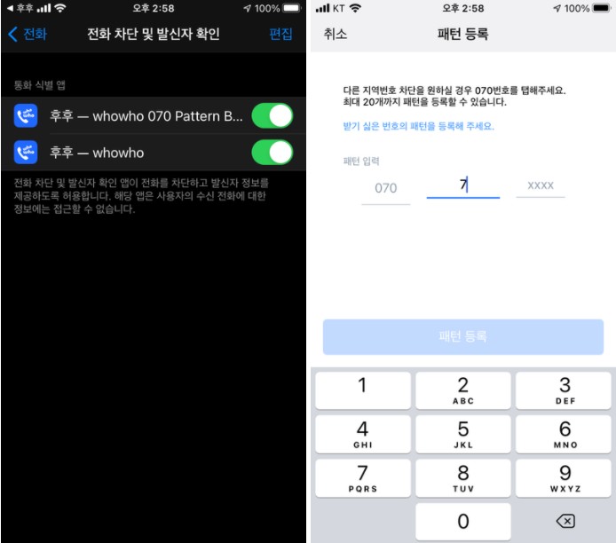 아이폰 KT의 경우 후후 부가서비스뿐만 아니라 앱을 통해서도 전화 차단과 발신자 확인이 가능한데요.