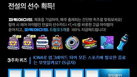 | [피파온라인2 이벤트] 피파온라인2 파워에이드 퀴즈 3주차 이벤트 정답!! (0) | 2012.01.16 |